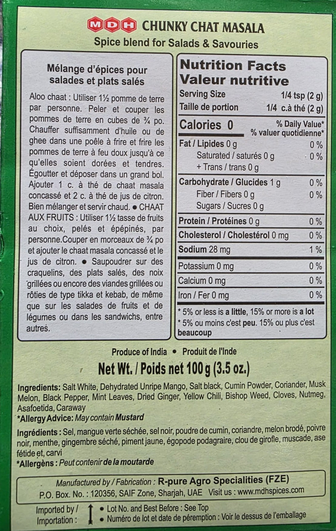 Add a burst of tangy and spicy flavour to your favourite snacks with MDH Chunky Chat Masala. A perfectly balanced blend of aromatic spices, ideal for chaats, fruits, salads and street-style snacks.